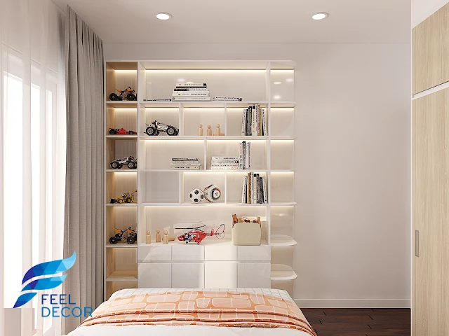 Vì là một người thường xuyên nói trước nhiều người và xuất hiện tại những địa điểm quan trọng, anh Bình cần có nhiều bộ cánh khác nhau cho mỗi sự kiện. Nên các KTS của Feel Decor đã cải tạo phòng ngủ này thành một phòng thay đồ với bố trí nhiều kệ tủ phù hợp mới những loại quần áo khác nhau và phụ kiện đi kèm khác nhau. Đồng thời vẫn bố trí hệ giường hộp cho căn phòng nhằm sử dụng vào những lúc có khách đến nhà và đây cũng là nơi các thành viên có thể thư giãn hoặc đọc sách và ngắm cảnh ở phía ngoàiQua mẫu thiết kế thi công nội thất căn hộ của anh Binh, Feel Decor đã thành công trong vai trò là nhà tư vấn và thi công nội thất căn hộ chuyên nghiệp hàng đầu của mình. Bằng cách khai thác không gian hiệu quả và gia tăng vẻ đẹp cho căn hộ qua phần thiết kế nội thất chuyên nghiệp, Feel Decor hy vọng sẽ được tiếp tục mang đến nhiều mẫu căn hộ hay nhà phố đẹp hơn cho khách hàng.